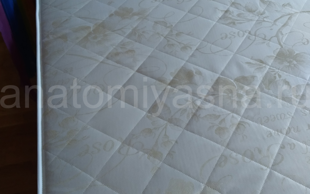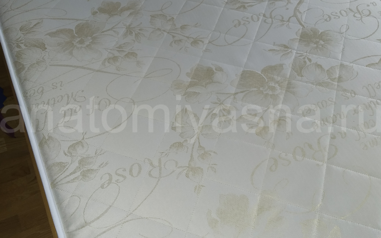 Верхнее покрытие матраса жаккард, стеганый с синтепоном - высокопрочная ткань, состоящая из синтетических материалов с добавлением нитей из натуральных тканей с особым переплетением волокон. Синтетический жаккард может быть двойным (дублированным) или недублированным. Как правило, дублированный жаккард используют в качестве верхнего покрытия для матрасов, чехлов и наматрасников. Самой важной характеристикой ткани является его прочность и износостойкость.